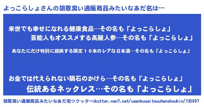 | 意味不明あだ名 | 『住所不定無職よっこらしょ(43歳)』 |