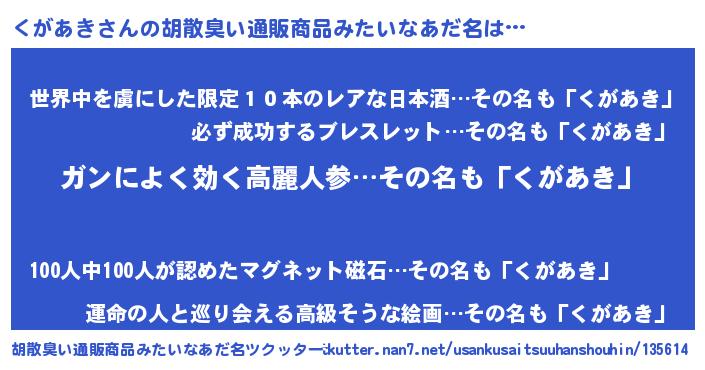 | 意味不明あだ名 | 『自称くがあき』『たけのこ科くがあき属』 |