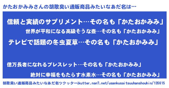 | 意味不明あだ名 | 『自称かたおかみみ』 |