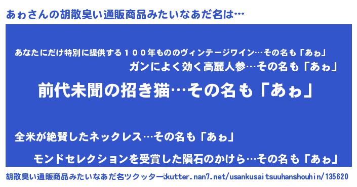 | ヘコむあだ名 | 『あゎ(笑)』『あゎを』『酢こんぶ』 |