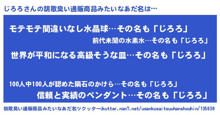 | ヘコむあだ名 | 『豆乳』『じろふぇ~』『じろ太郎』 |