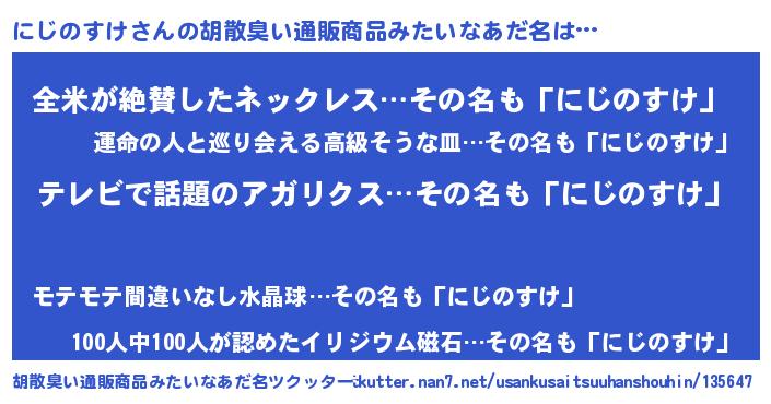 | 意味不明あだ名 | 『自称にじのすけ』『ニラ科にじのすけ属』 |