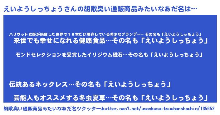 えいようしっちょうさんの胡散臭い通販商品みたいなあだ名をツクッター!