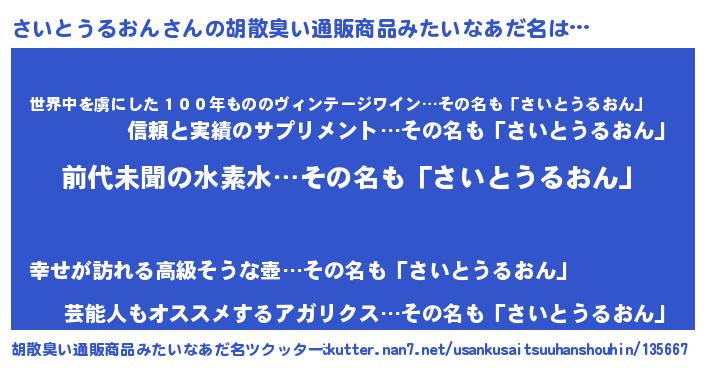 | 意味不明あだ名 | 『永久保存さいとうるおん』 |
