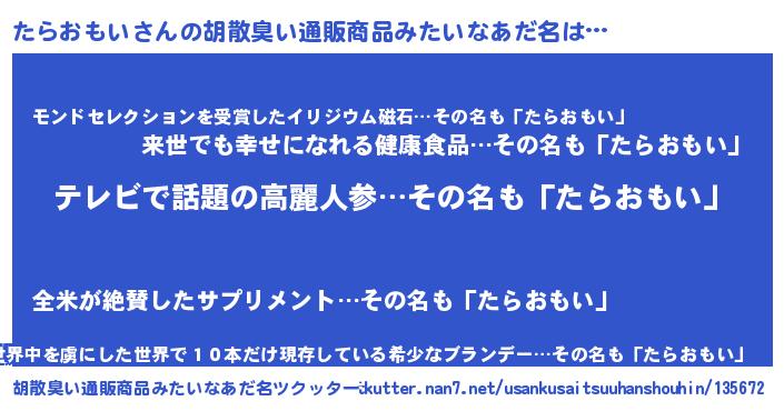 | ヘコむあだ名 | 『たらおもい(笑)』『たら太郎』 |