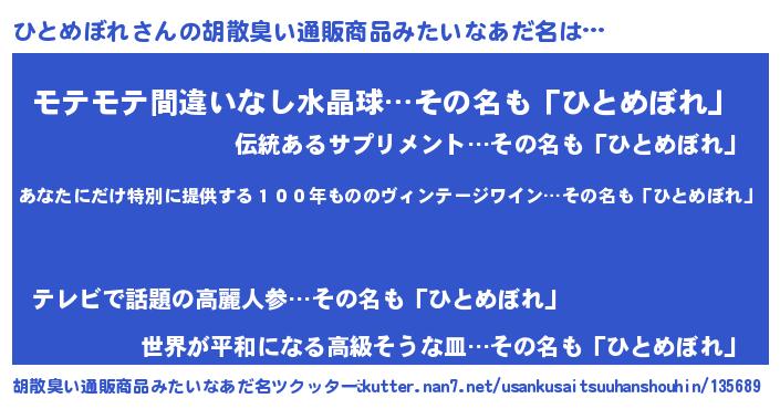 | 意味不明あだ名 | 『住所不定無職ひとめぼれ(13歳)』 |