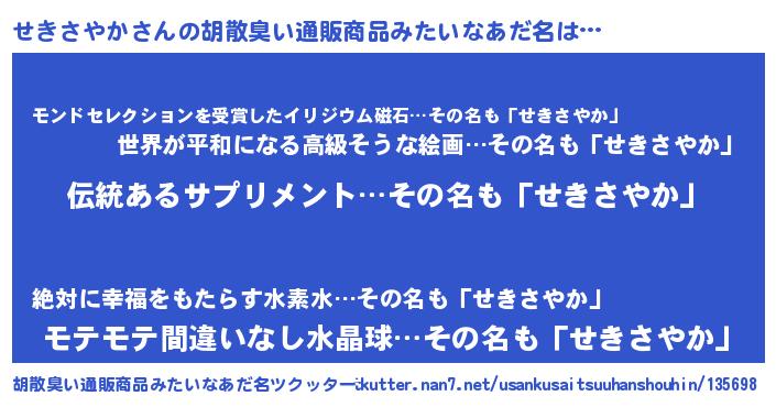 せきさやかさんの胡散臭い通販商品みたいなあだ名をツクッター!
