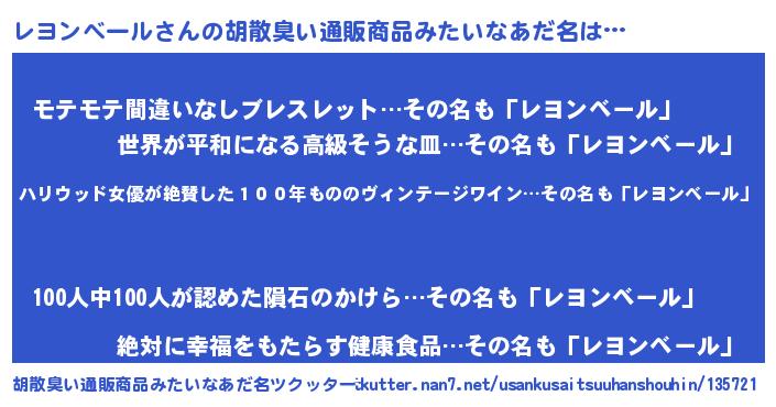 | 意味不明あだ名 | 『住所不定無職レヨンベール(2歳)』 |