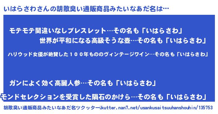 | 意味不明あだ名 | 『住所不定無職いはらさわ(10歳)』 |