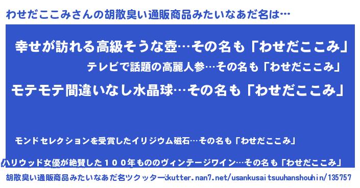 | 恥ずかしいあだ名 | 『プリティーわせだここみ』『わせっちょ』 |