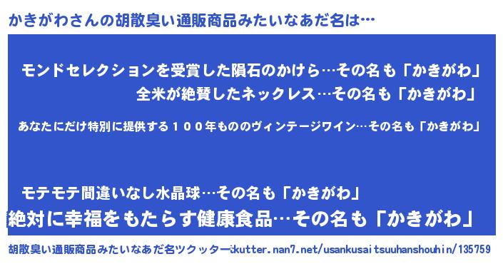 かきがわさんの胡散臭い通販商品みたいなあだ名をツクッター!