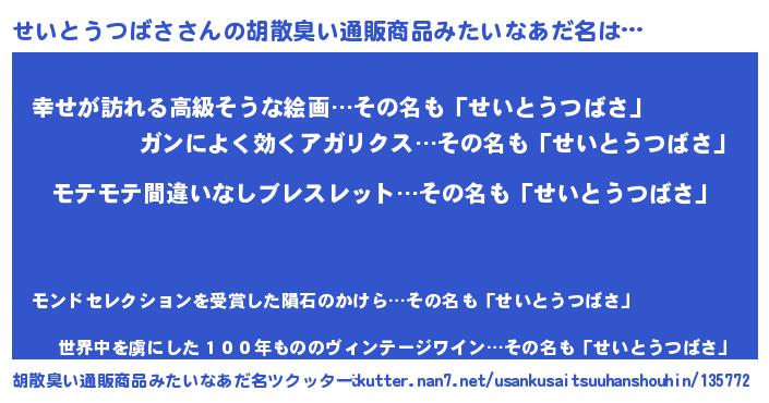 | ヒーロー風カッコイイあだ名 | 『スーパーセイトウツバサ』 |
