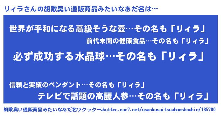 | 男性向けラノベタイトル風あだ名 | 『リィラの憂鬱』『魔法科高校のリィラ』 |