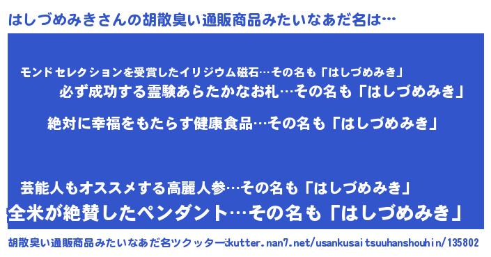 | 男性向けラノベタイトル風あだ名 | 『はしづめみきという概念が存在しない退屈な世界 』 |