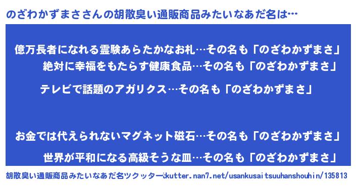 | ヘコむあだ名 | 『のざにゅー』『酢こんぶ』『のざお』 |