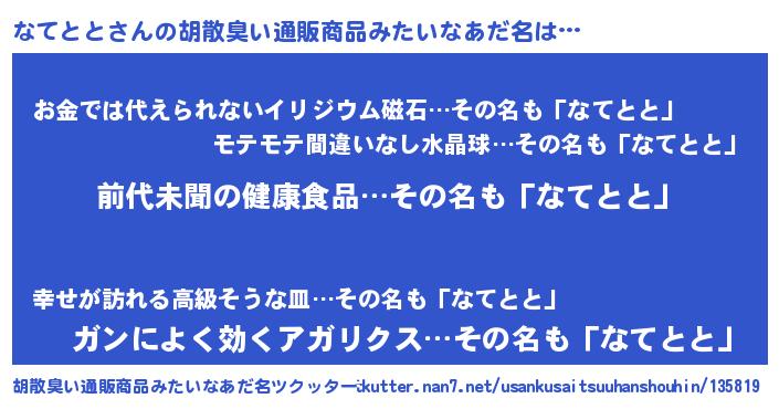 | 意味不明あだ名 | 『永久保存なてとと』『自称なてとと』 |