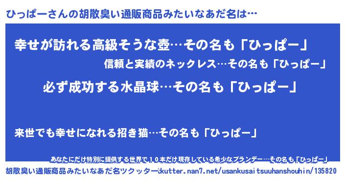 | 男性向けラノベタイトル風あだ名 | 『ひっぱーの憂鬱』『ヒッパースレイヤー』 |