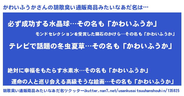 | 肩書あだ名 | 『かわいふうか上級大将』 |