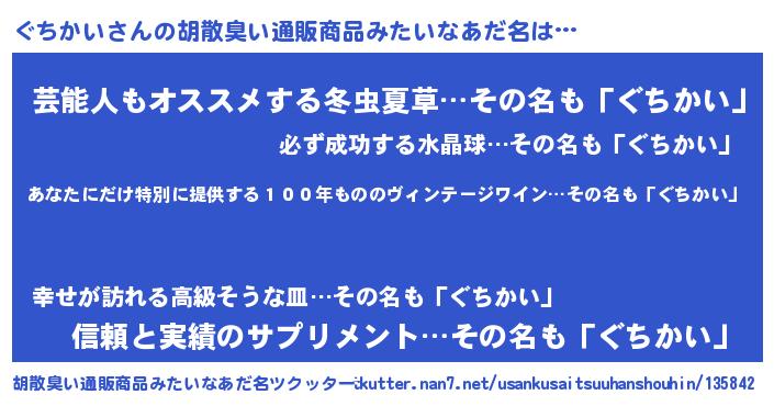 | ヒーロー風カッコイイあだ名 | 『仮面グチダー』『ウルトラ戦士グチカイ』 |