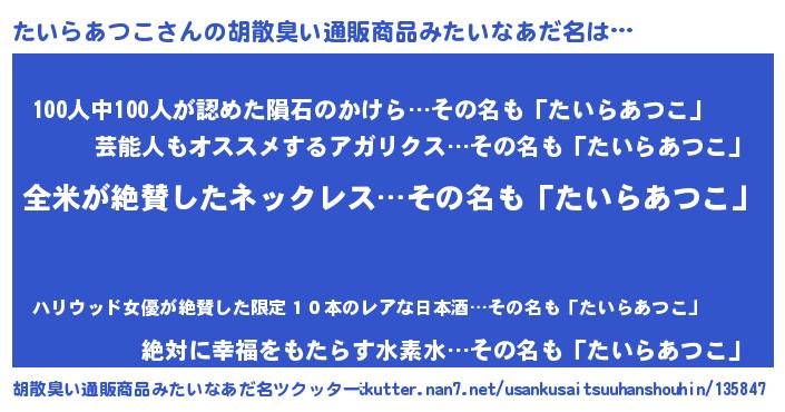 | 意味不明あだ名 | 『とにかく怪しいたいらあつこ』 |