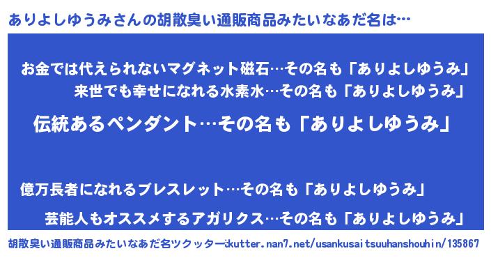 | 肩書あだ名 | 『ありよしゆうみ大将』 |