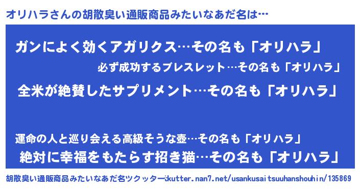 | ヘコむあだ名 | 『オリを』『オリハラ(笑)』『豆乳』 |