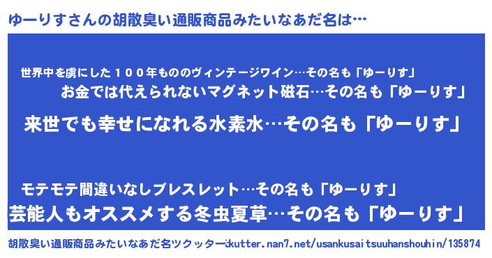 | 意味不明あだ名 | 『永久保存ゆーりす』『自称ゆーりす』 |
