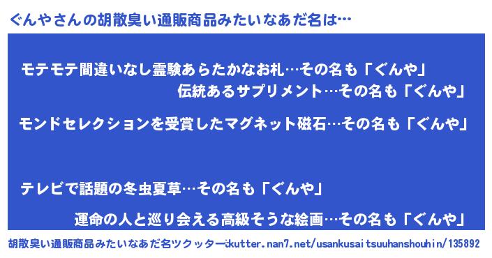 | ヘコむあだ名 | 『ぐんにー』『なまこ酢』『ぐんお』 |