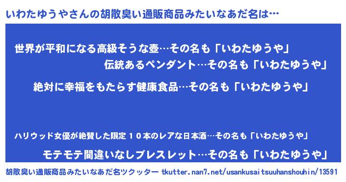 いわたゆうやさんの胡散臭い通販商品みたいなあだ名をツクッター!