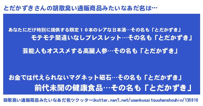 | ヘコむあだ名 | 『とだかずき(小並感)』『とだにゅー』 |