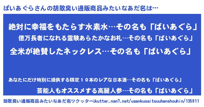 | 意味不明あだ名 | 『とにかく怪しいばいあぐら』 |