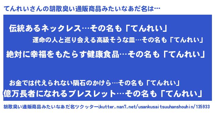 | 意味不明あだ名 | 『永久保存てんれい』『ペロリンてんれい』 |