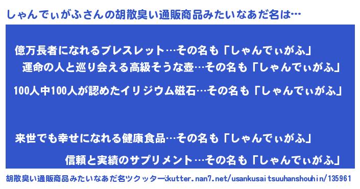| 欧米人風あだ名 | 『トリンドルしゃんでぃがふ』 |