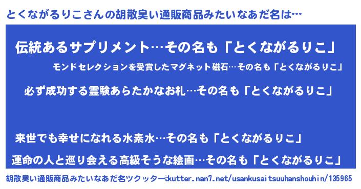 | 恥ずかしいあだ名 | 『プリティーとくながるりこ』『とくちん』 |