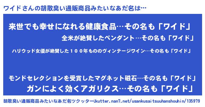 | ヘコむあだ名 | 『ワイド(小並感)』『ワイっ子』 |