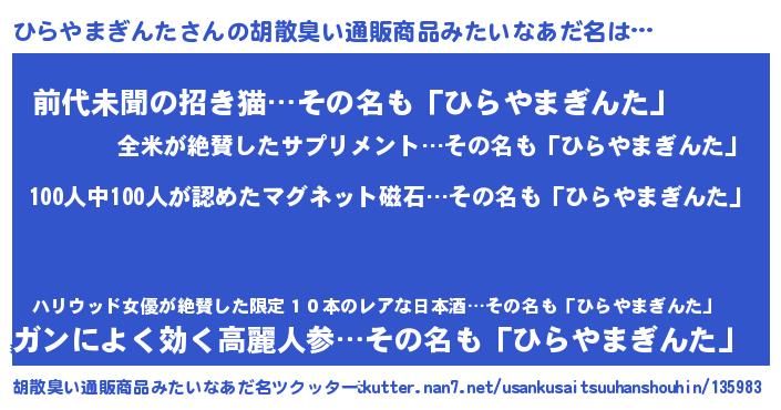 | 意味不明あだ名 | 『眠気覚ましガムひらやまぎんた味』 |