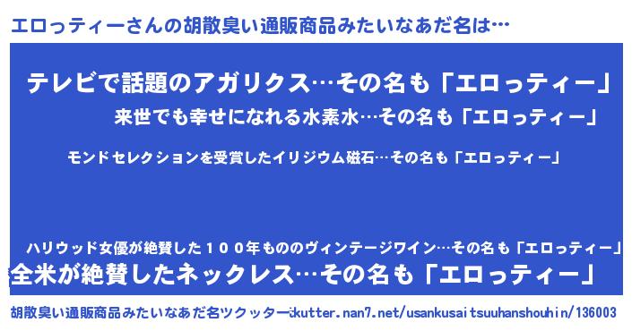 | ヒーロー風カッコイイあだ名 | 『慈愛の使者エロっティー』 |