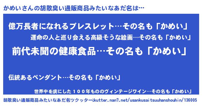 | ファンタジー風あだ名 | 『カメディッシュ』『カメフェル』 |