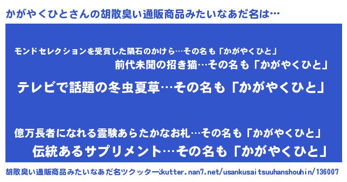 | ヘコむあだ名 | 『かがっぺ』『かがやくひと(震え声)』 |