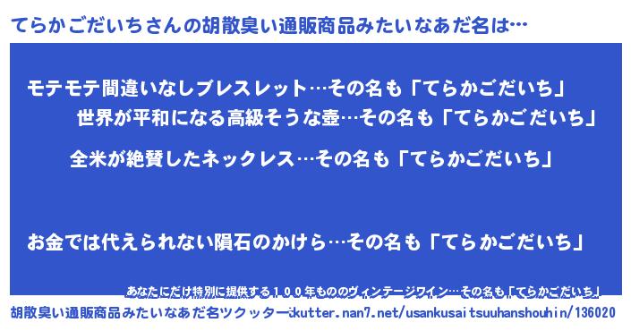| 欧米人風あだ名 | 『トリンドルてらかごだいち』 |