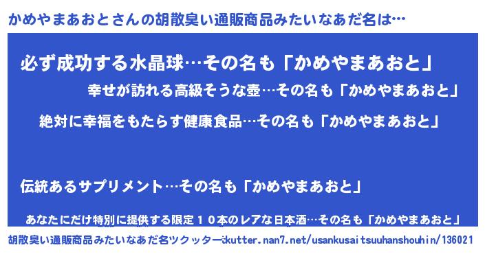 | 意味不明あだ名 | 『永久保存かめやまあおと』 |