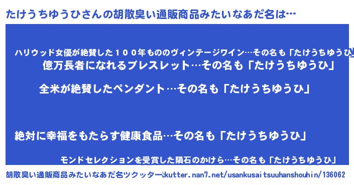 | 意味不明あだ名 | 『とにかく怪しいたけうちゆうひ』 |