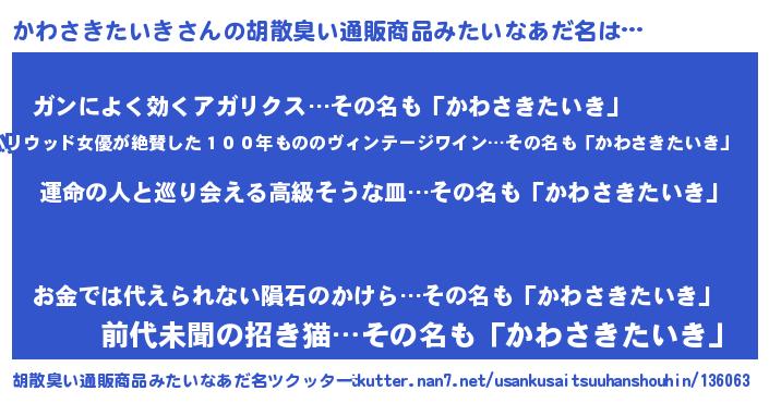 | 意味不明あだ名 | 『かわさきたいきフォーエバー』 |