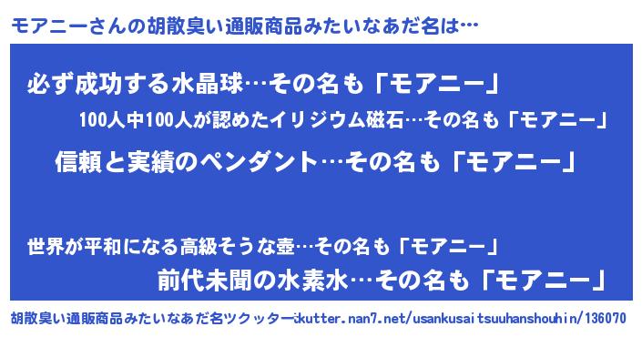 | 肩書あだ名 | 『モアニー塾長』『モアニー艦長』 |