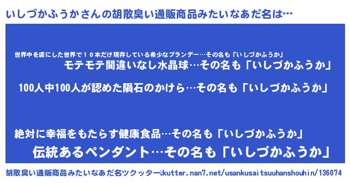 | 女子向けラノベタイトル風あだ名 | 『いしづかふうか夫妻のなれそめ』 |