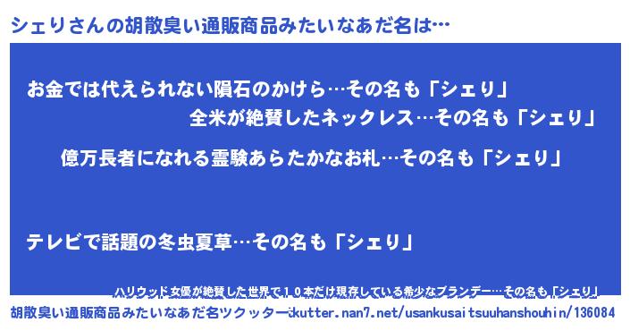 | ヒーロー風カッコイイあだ名 | 『スーパーシェリ』『友情の使者シェり』 |