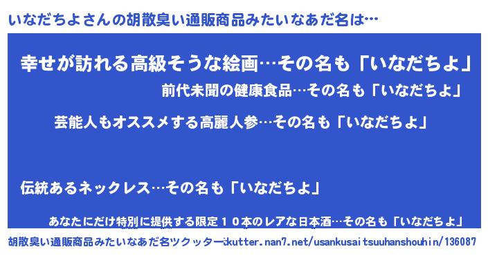 | 意味不明あだ名 | 『自称いなだちよ』『永久保存いなだちよ』 |
