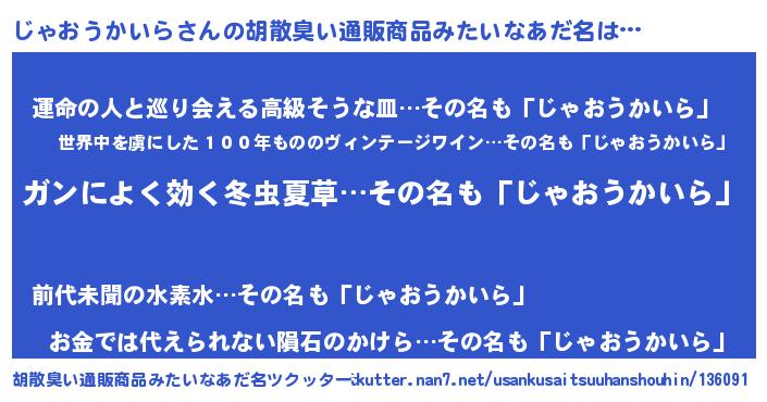 | 欧米人風あだ名 | 『ケンブリッジじゃおうかいら』 |