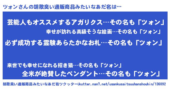 | ヒーロー風カッコイイあだ名 | 『スーパーツォン』『究極戦士ツォン』 |