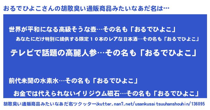| 意味不明あだ名 | 『自称おるでひよこ』 |